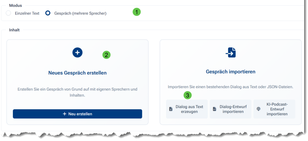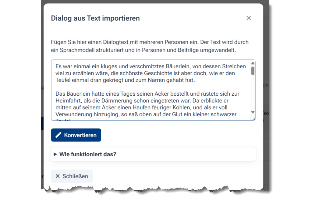 (3) lassen Sie sich ein Gespräch (z. B. Podcast, Interview, Märchen usw.) aus einem vorhandenen Text erstellen.