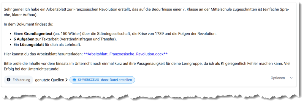 Nun erhalten Sie das Ergebnis der KI mit fertigem Arbeitsblatt: